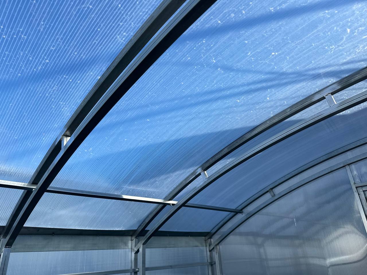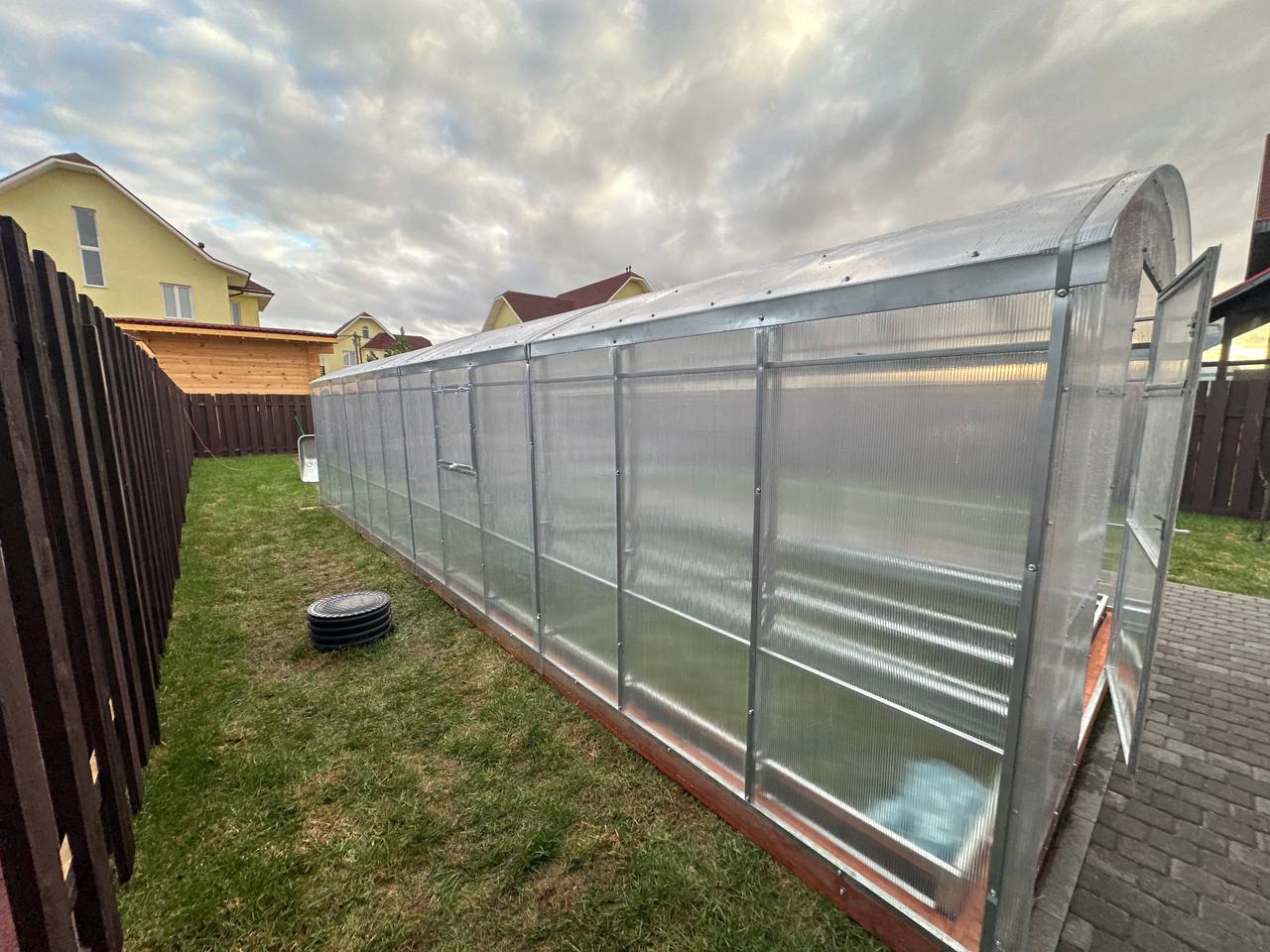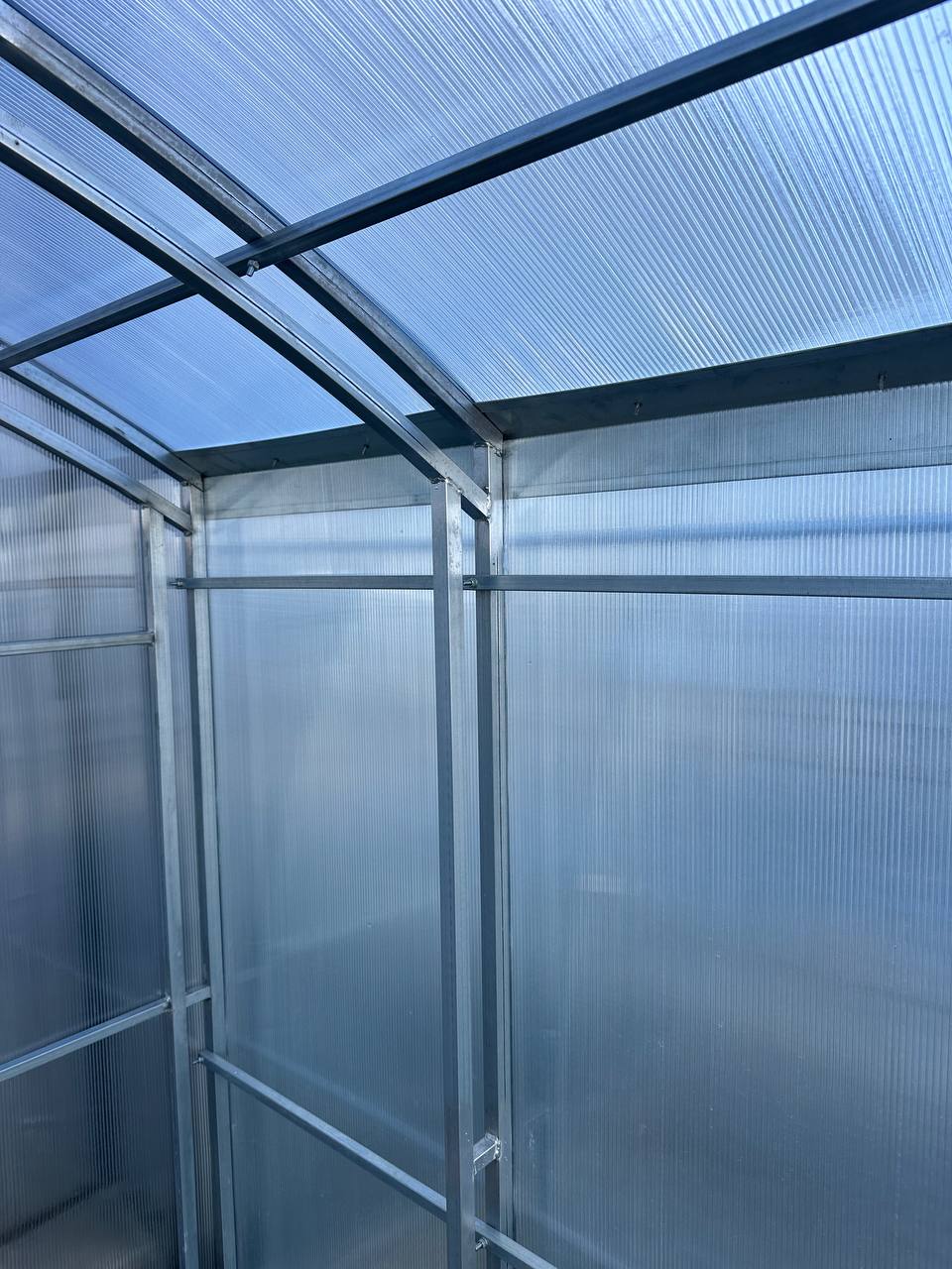 📦 Полный комплект: Все для сборки включено: каркас из оцинкованной трубы, поликарбонат с УФ-защитой, 2 двери с форточками, фурнитура, крепеж.