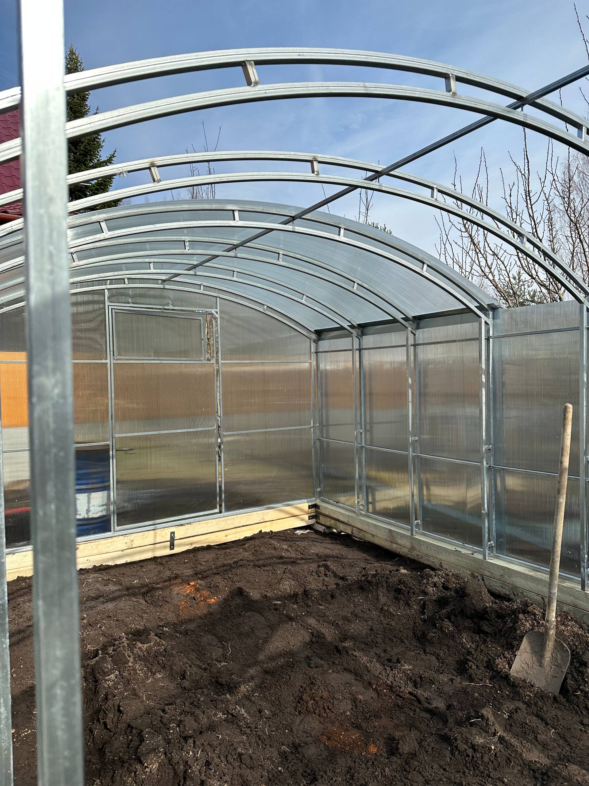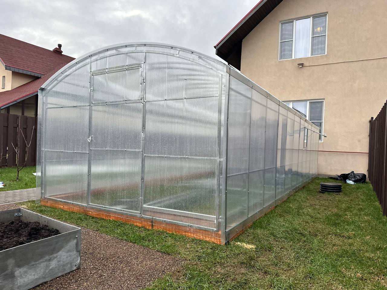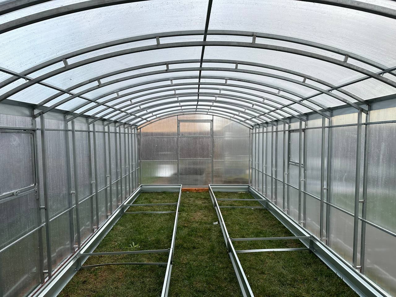 📦 Полный комплект: Все для сборки включено: каркас из оцинкованной трубы, поликарбонат с УФ-защитой, 2 двери с форточками, фурнитура, крепеж.